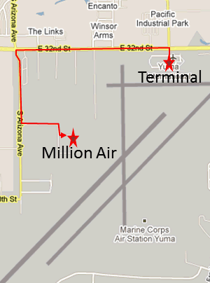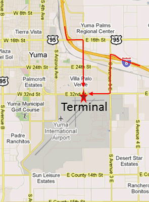 Take Exit 3, turn south (left) onto Ave 3E. Turn right on 32nd Street. One mile, at Pacific Ave, turn left into the Airport Parking Lot.