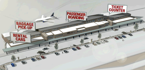 At Gillaspie Place, turn left, then right on Burch Way. Next left into the Million Air Parking Lot.